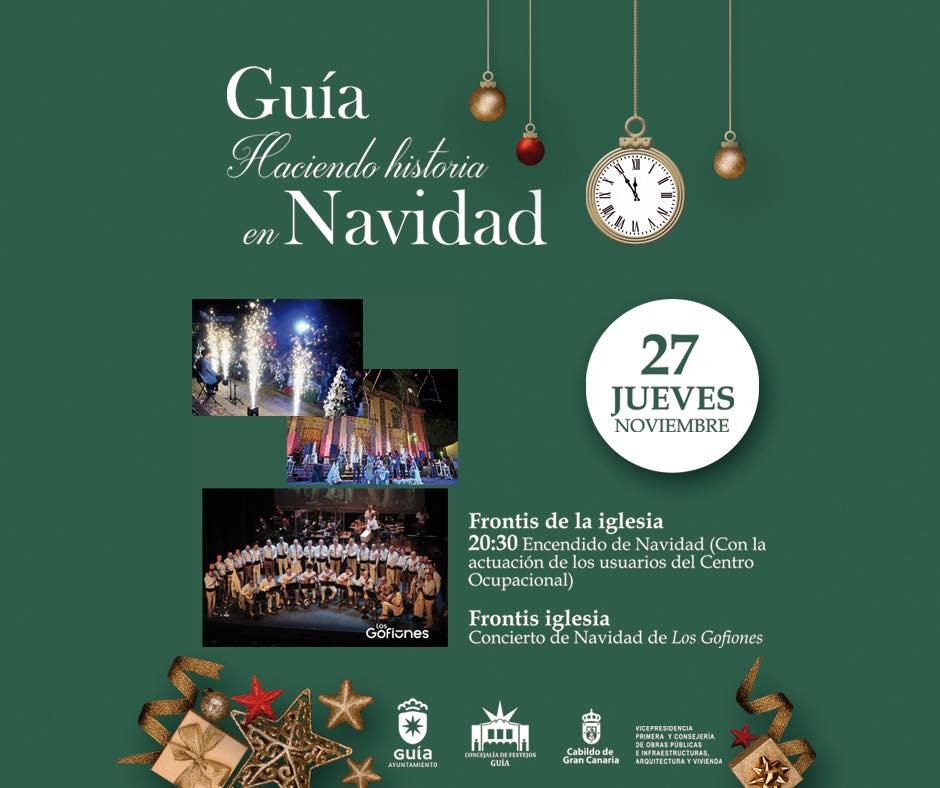 La noche del jueves continuará con el estreno en Guía del Concierto de Navidad de Los Gofiones, uno de los grupos más representativos de la música popular canaria. Con su estilo único y enérgico, combina ritmos tradicionales con melodías modernas para crear un sonido fresco y vibrante que cautiva a público de todas las edades. Su repertorio incluye villancicos tradicionales canarios, así como canciones navideñas internacionales adaptadas a su estilo característico. Su talento y carisma garantizarán una noche inolvidable para todos los asistentes.