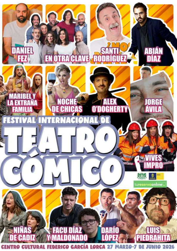 El encargado de abrir el festival será el creador de contenido Daniel Fez, el «influencer regulinchi», que dará el pistoletazo de salida a esta edición. A lo largo de las semanas siguientes, el público podrá disfrutar de las propuestas de Santi Rodríguez, que invitará a viajar a través del humor, y de Abián Díaz, con su «Show Patético» que, dado el éxito del mismo, se ha habilitado una nueva función. También formarán parte del cartel Sil de Castro, presentando una «Noche de Chicas», y la compañía 2RC Producciones, que traerá a escena la comedia con tintes de thriller «Maribel y la Extraña Familia». Álex O’Doherty llegará pronunciando «Palabras Mayores», mientras que la improvisación y el humor canario estarán representados por Romina Vives, Delia Santana y Jennifer Artiles (Vives Impro) y su «3 en Alerta».