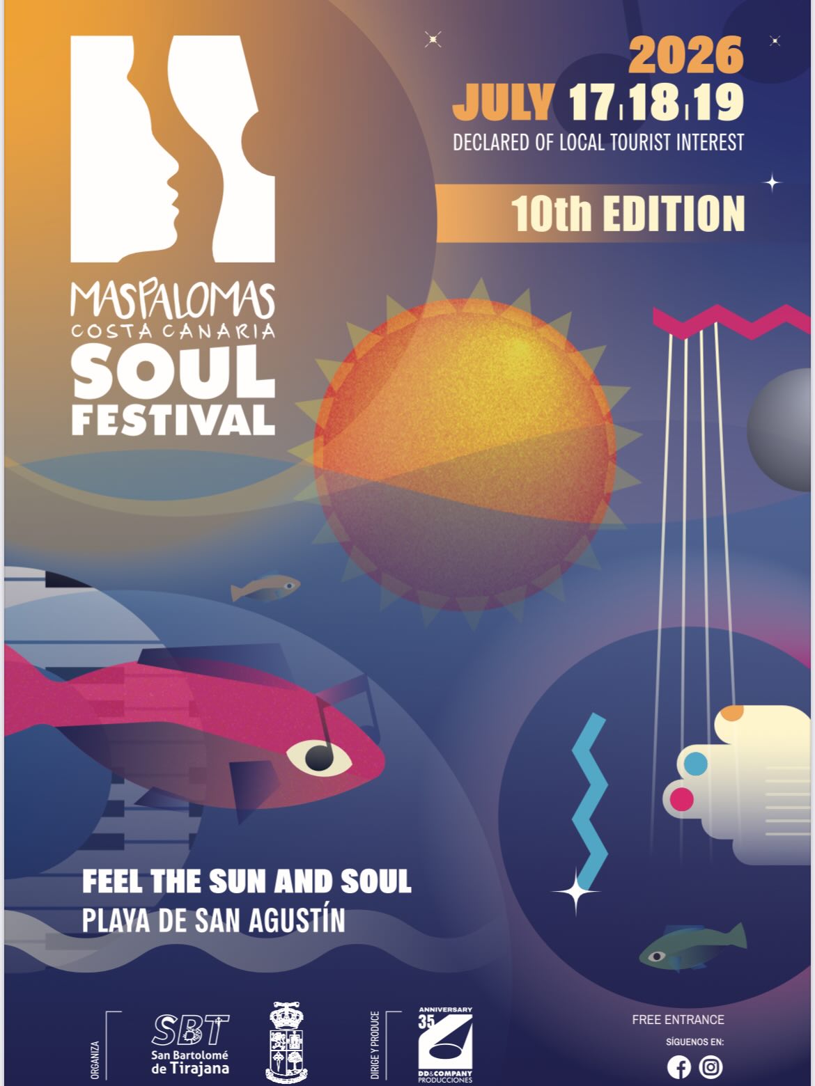 El Maspalomas Costa Canarias Soul Festival, declarado de interés turístico local, se consolida, tras una década de historia como el mayor encuentro de música soul en España y un referente en Europa. Este festival, organizado por el Ayuntamiento de San Bartolomé de Tirajana con la dirección y producción de la productora DD&Company Producciones, que dirige Dania Dévora, combina el encanto del litoral del sur de Gran Canaria con una cuidada selección de artistas de prestigio nacional e internacional, ofreciendo un espectáculo único a orillas del Atlántico.