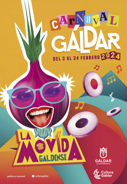 La Concejalía de Cultura y Fiestas del Ayuntamiento de Gáldar, que dirige Julio Mateo Castillo, ha hecho público el cartel del Carnaval de Gáldar 2024, que estará dedicado a ‘Los Años 80’ y que se celebrará del 2 al 24 de febrero, extendiendo así su programación a tres semanas, una más de lo habitual. Después de la exitosa celebración del Carnaval 2023, que estuvo dedicado a ‘Los Locos Años 60’, en esta ocasión los vecinos del municipio han escogido, a través de los medios oficiales del Ayuntamiento, la temática de ‘Los Años 80’, que ha superado en la encuesta a Eurovisión, El Universo, Carnavales del mundo y Las Vegas.