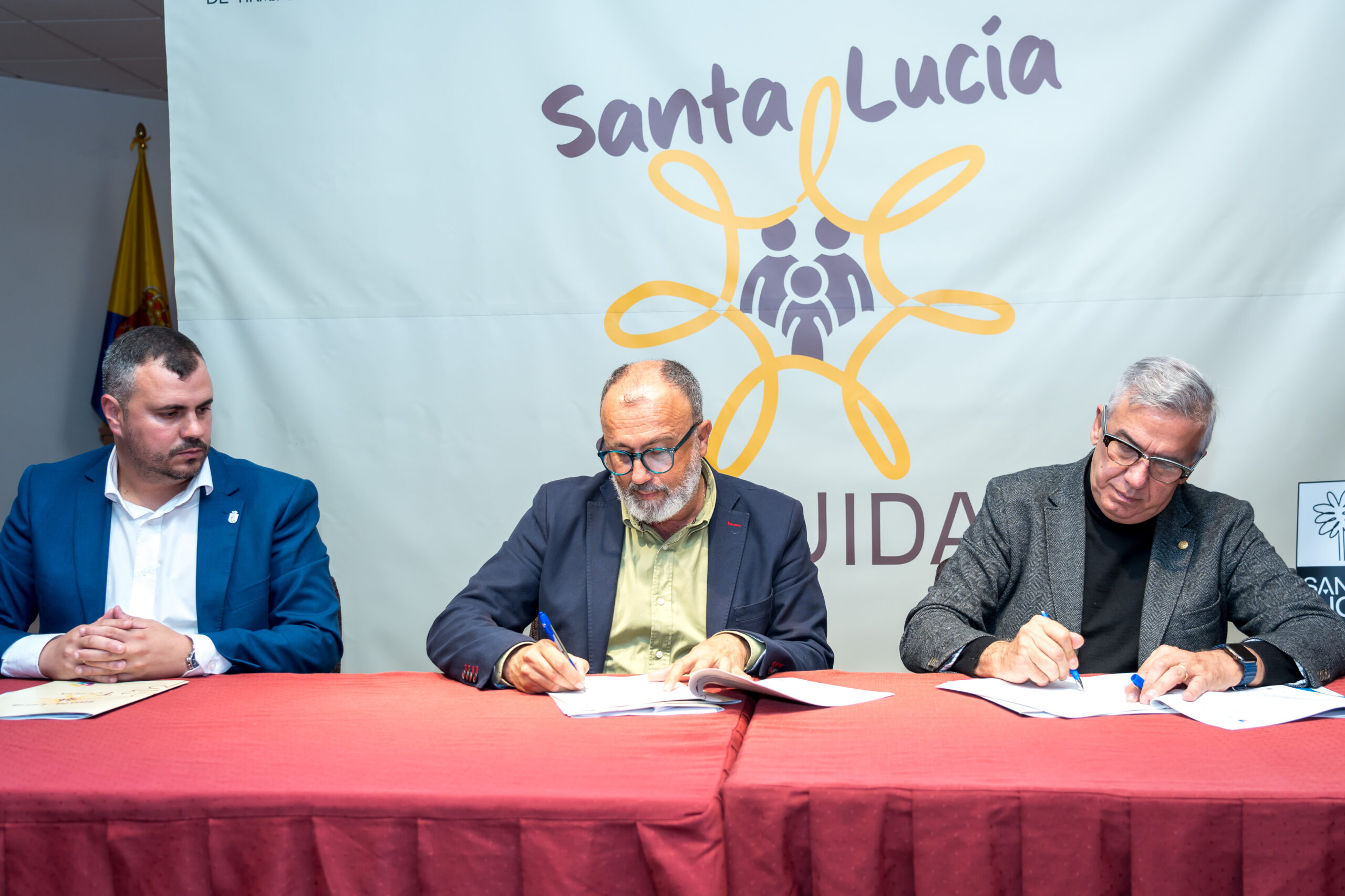 Analizar los principales retos sociales del municipio e impulsar las políticas de cuidados y bienestar de la ciudadanía son los principales retos del Observatorio de Innovación Social y Comunitaria que pone en marcha el Ayuntamiento de Santa Lucía de Tirajana con la colaboración de la Universidad de Las Palmas de Gran Canaria. El alcalde, Francisco García y el rector de la ULPGC, Lluís Serra, firmaron este miércoles el convenio de colaboración que permite poner en marcha el nuevo observatorio. En el acto también estuvieron el concejal de Atención Social y Comunitaria, Saúl Goyes, el personal municipal del área de Servicios Sociales, de otros departamentos y representantes de diferentes organizaciones sociales.