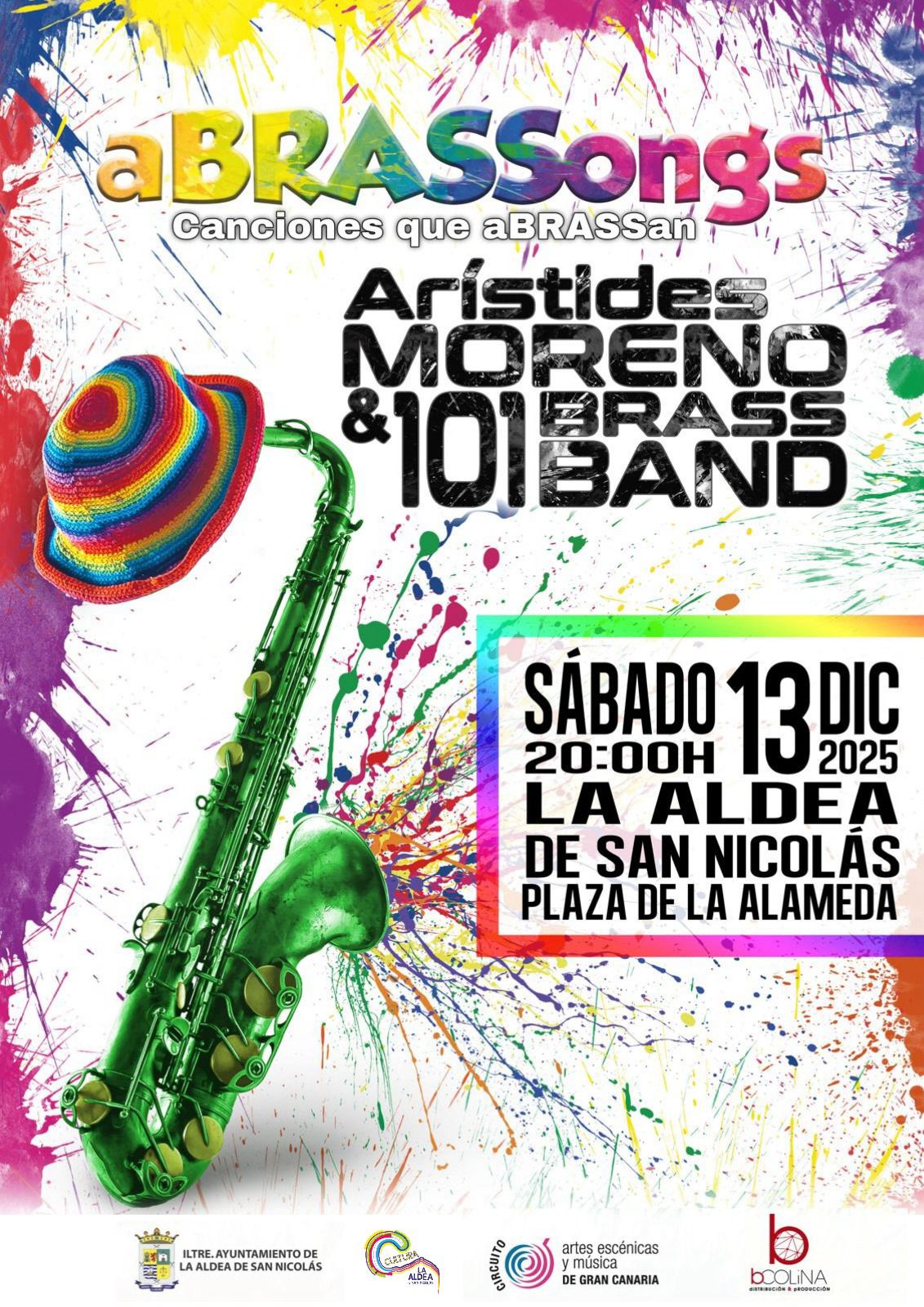 El concejal de Cultura, Víctor Juan Hernández, anima a todo el municipio a sumarse a esta cita musical y detalla que “queremos que La Aldea siga siendo un punto de encuentro cultural, abierto, diverso y lleno de vida. Traer a Arístides Moreno y a la 101 Brass Band es apostar por la música que conecta, que emociona y que invita a celebrar juntos. Estamos seguros de que será una noche inolvidable para nuestro pueblo”.