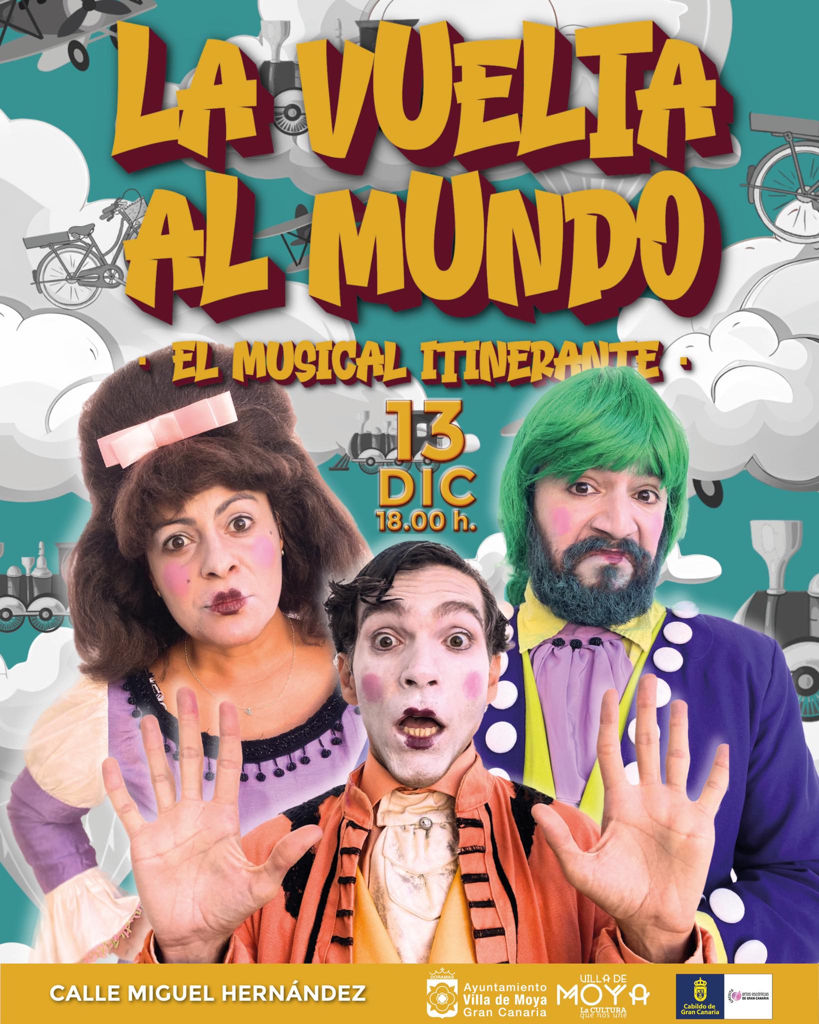 ‘La Vuelta Al Mundo’ un musical itinerante que llega al casco de la Villa de Moya. Ochenta días para recorrer el mundo y cualquiera puede convertirse en protagonista de esta aventura.