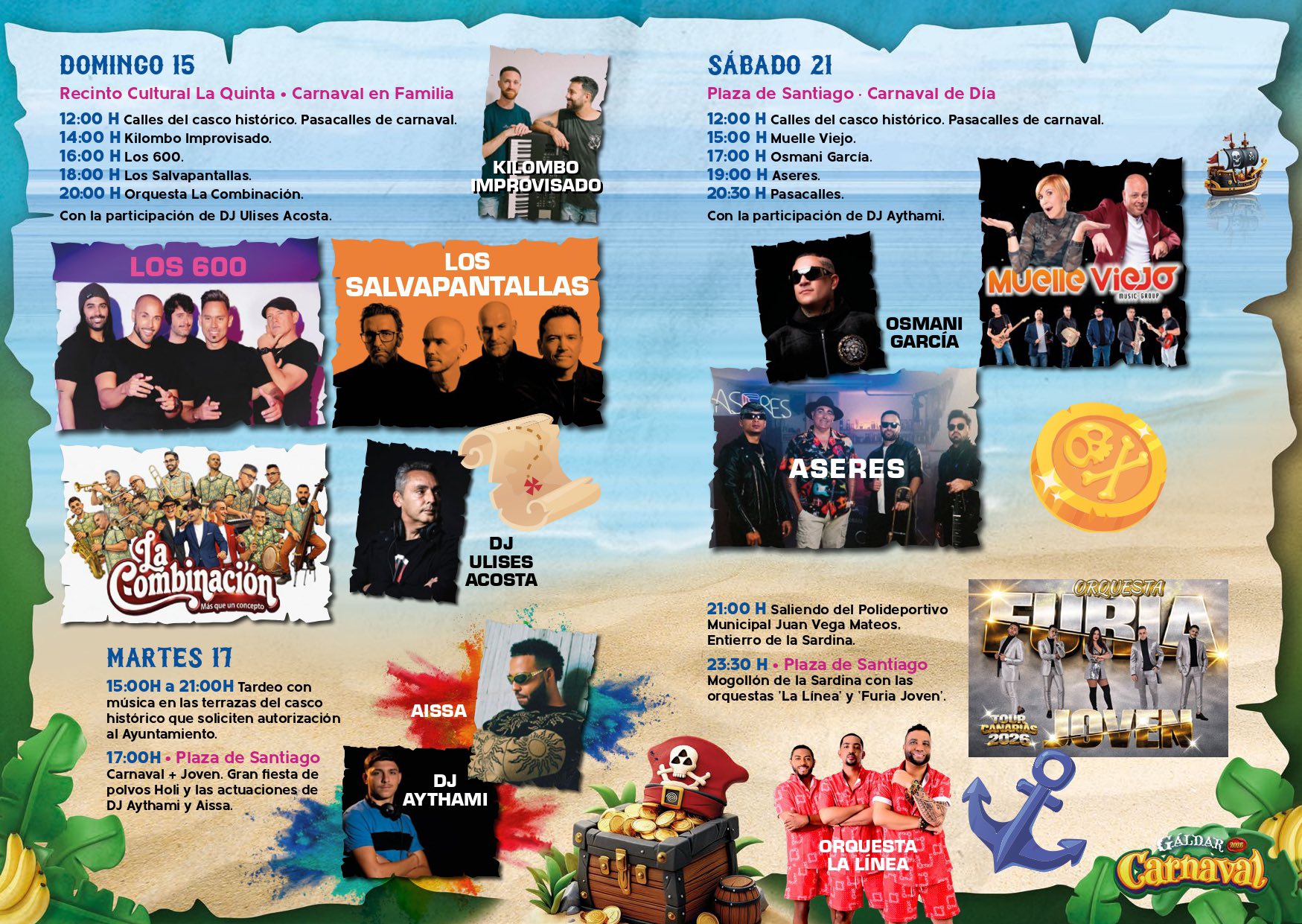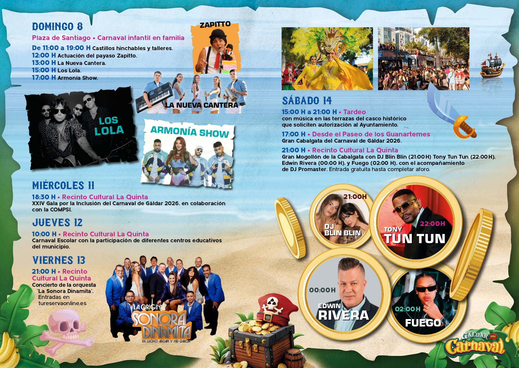 Gala Drag Queen del Carnaval de Gåldar 2026 presentada por Luján Argüelles. Exhuberancia Carey y los drags galdenses Vulcano y Kiowa. Con la actuación de Las Ketchup. Entrada gratuita hasta completar aforo.