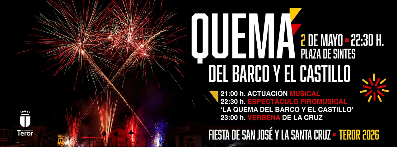QUEMA DEL BARCO Y EL CASTILLO 2026. Obertura con el espectáculo “Y así el mar llegó a Teror” y el piromusical a cargo de la pirotecnia El Pilar, de Benjamín Dávila Sosa, con la colaboración de Múdate Studios y la Asociación de Recreación Histórica Milicias Canarias.