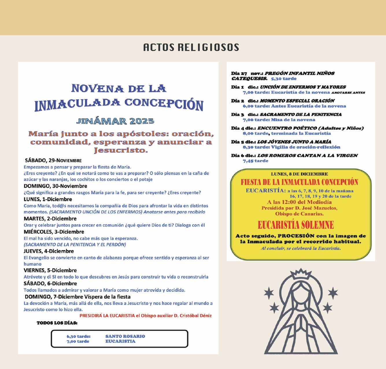 13:00 A 14:00 PROCESION DE LA VIRGEN POR LA CARRETERA GENERAL.