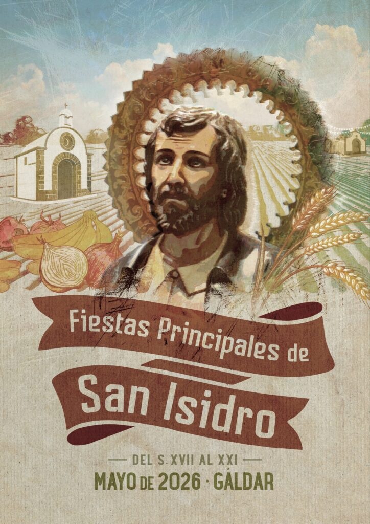 19:30h En la Iglesia. Pregón de las Fiestas Principales en Honor a San Isidro 2026 por el Excmo. Sr. Alcalde de la Real Ciudad de Gáldar D. Teodoro Claret Sosa Monzón, con la actuación de la Agrupación Musical Santa Cecilia.
