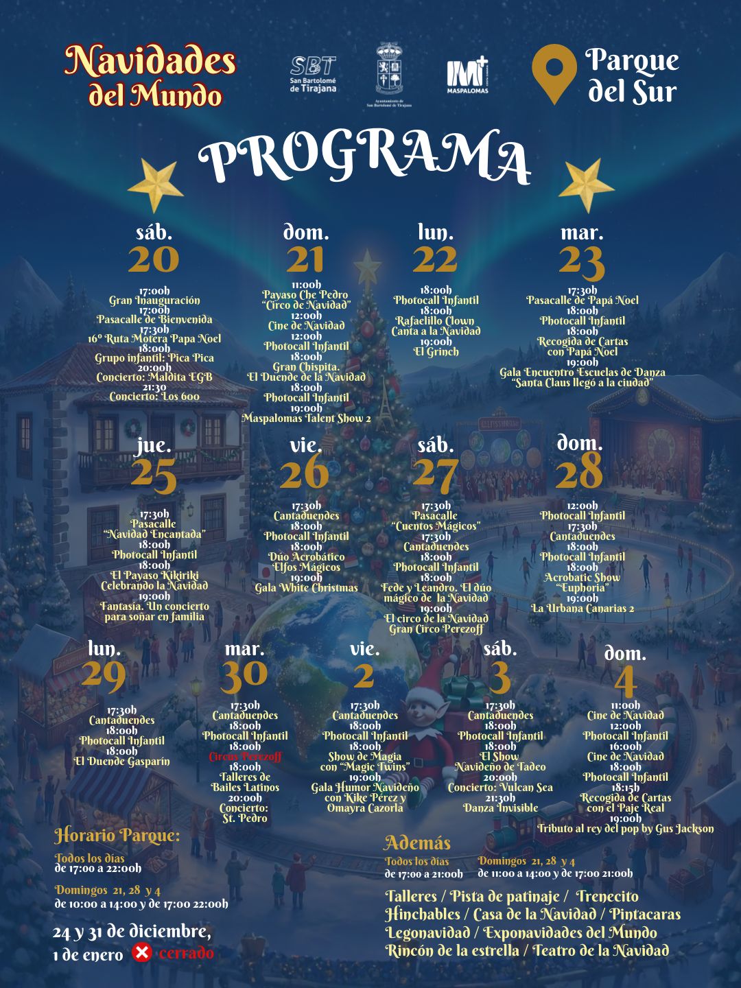 Talleres / Pista de patinaje / Trenecito Hinchables/Casa de la Navidad / Pintacaras Legonavidad/Exponavidades del Mundo Rincón de la estrella / Teatro de la Navidad
